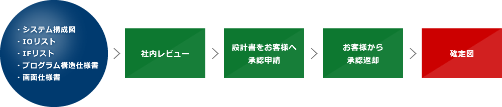 設計図書を作成後に社内レビューを行い、問題のないことを確認したうえでお客様へ承認申請を行います。